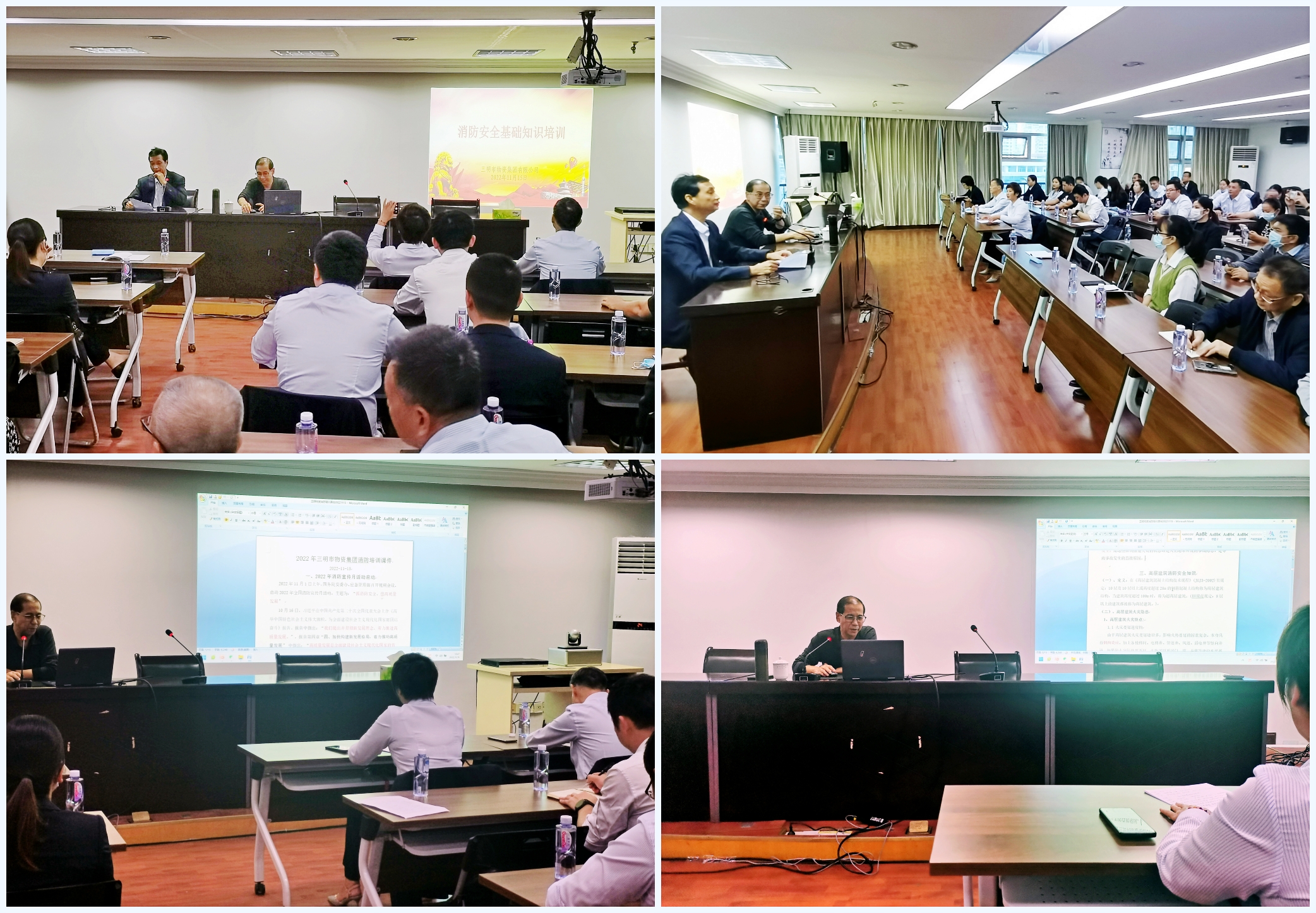 為進(jìn)一步做好今冬明春火災(zāi)防控工作,有效預(yù)防和減少安全事故發(fā)生,根據(jù)消防安全月活動(dòng)安排,11月15日下午,市物資集團(tuán)特邀請(qǐng)國(guó)家注冊(cè)安全工程師、安全評(píng)價(jià)師陳協(xié)成為物資集團(tuán)全體職工開展消防安全知識(shí)專題培訓(xùn),物資大廈各入駐單位人員也應(yīng)邀參加。
