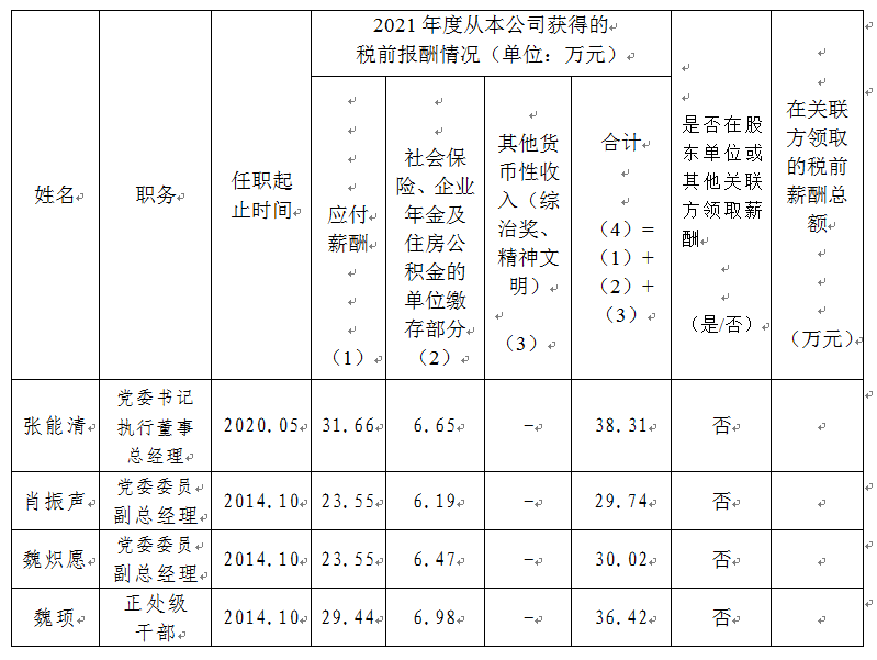2021年度三明市物資集團公司企業(yè)負責(zé)人薪酬信息披露情況表